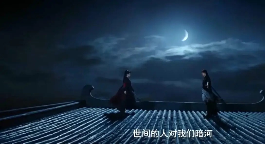 到了夜晚,弯月当空,对面站在房顶上,苏昌河向苏暮雨鸣不平,看来世间的人对他们暗河还真是充满敌意啊。
